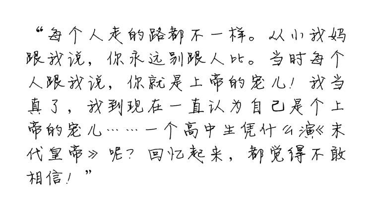 “说实话,有些事情是为一个人做的,有些事情是为一两个人做的。其实这个世界上只要有这一两个人是真正爱你的,你就已经很幸福了。得奖当然是好事,是同行给予你的一个肯定,但这种幸福感肯定不及我女儿捅了我一下更骄傲、更幸福。”她的语气平静了下来。