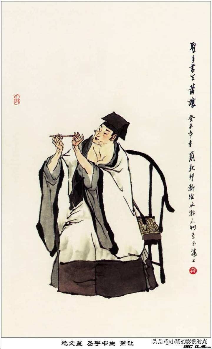 46地文星 圣手书生萧让:最后在蔡京府中为官。善于模仿体书法,被蔡京惦记,于是被梁山仇人收了。不过有所谓吗?无所谓,毕竟他就是被吴用派戴宗骗上梁山的。谁也不欠谁。