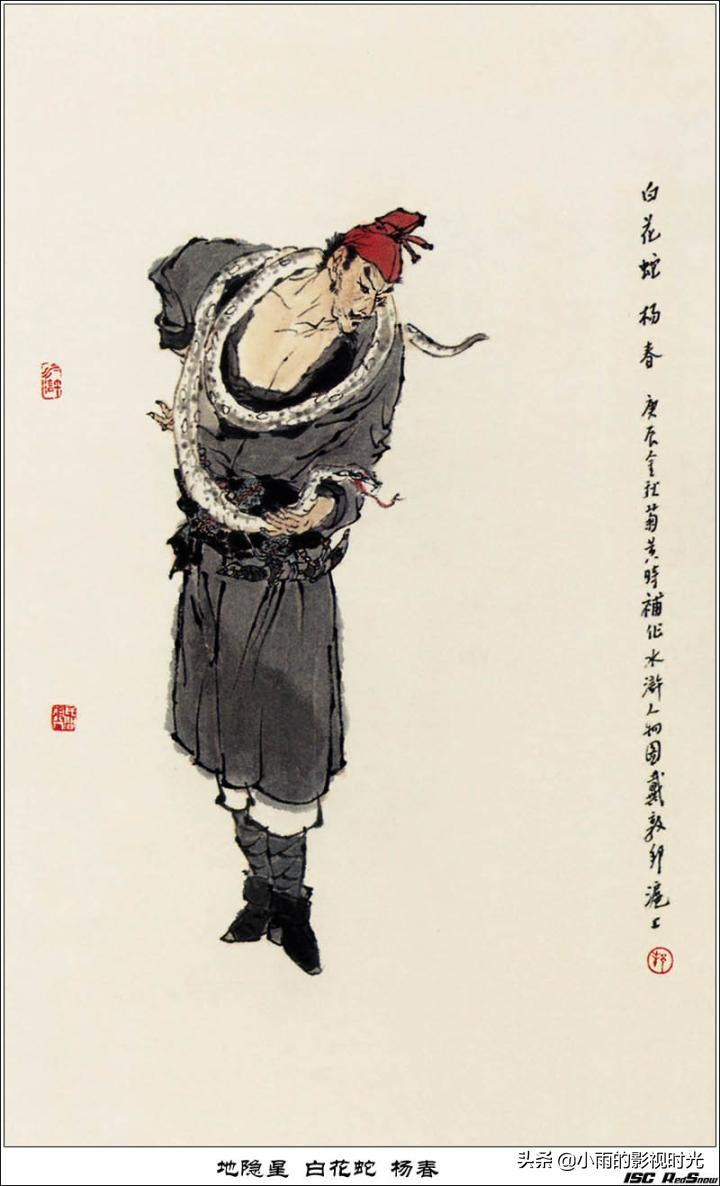 73地隐星 白花蛇杨春:征方腊时被埋伏射成刺猬。这货,和关羽关胜一个老家,蒲州解良人,开头出场时,少华山三个强盗商量去哪里抢劫,这货很实在的说,上我老家,那里有钱。