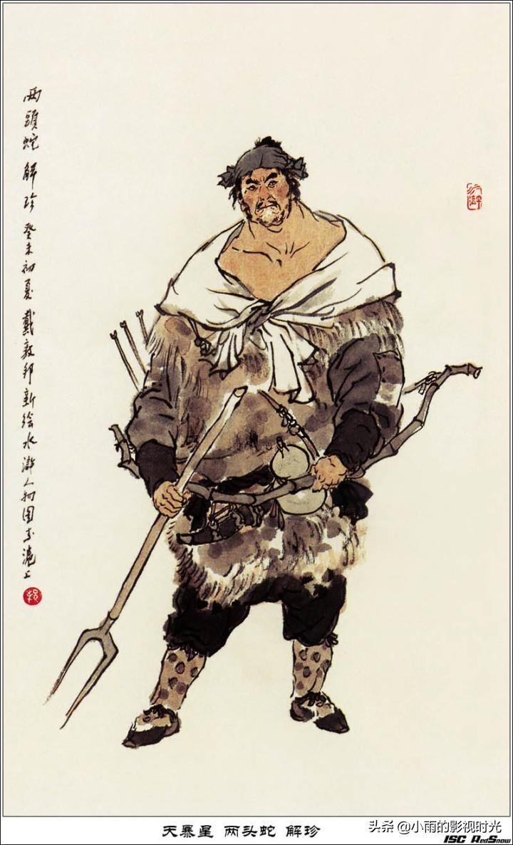 34天暴星 两头蛇解珍:征方腊期间,爬乌龙岭被敌人发现,叫挠钩抓住头发悬空提起时,用腰刀砍断绳索摔死。这死法,何其惨!