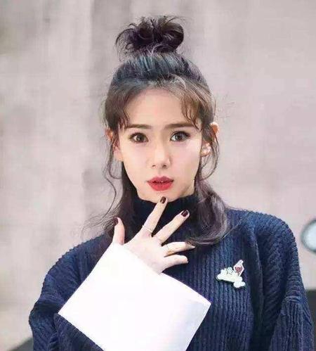 半丸子头有少女的可爱俏皮,同时还很小女人,今年很的羊毛卷刘海与之配合更加的活泼迷人,相比直发来说,要更灵动一些
