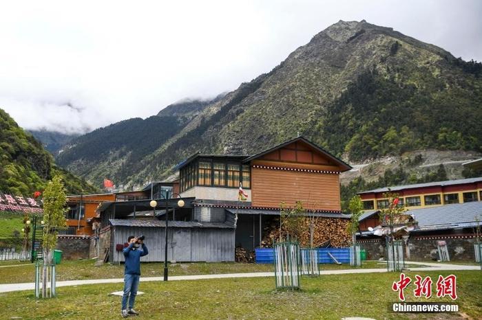 6月1日,记者探访西藏自治区山南市隆子县玉麦乡。玉麦乡位于西藏自治区山南市隆子县东北部边境地区,承担着守土固边的重要职责。玉麦乡是湖南省对口援助的乡村,这个曾经的“三人乡”已变成67户234人的小康示范乡。图为一位摄影爱好者在玉麦乡拍摄。 中新社记者 杨华峰 摄