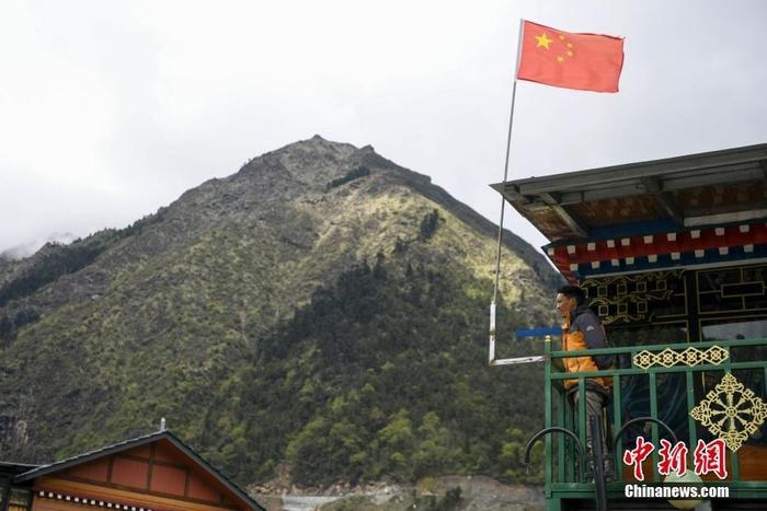 6月1日,记者探访西藏自治区山南市隆子县玉麦乡。玉麦乡位于西藏自治区山南市隆子县东北部边境地区,承担着守土固边的重要职责。玉麦乡是湖南省对口援助的乡村,这个曾经的“三人乡”已变成67户234人的小康示范乡。图为村民站在楼房上眺望。 中新社记者 杨华峰 摄