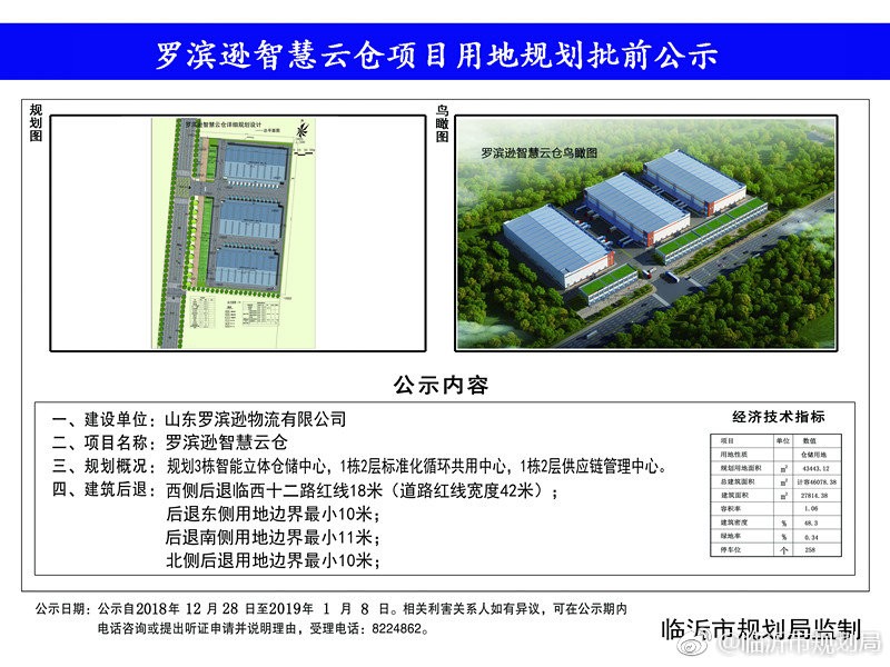 根据临沂自然资源和规划局给出的用地规划批前公示,罗宾逊智慧云仓规划3栋智能立体仓储中心,1栋2层标准化循环共用中心,1栋2层供应链管理中心,规划占地4万余平方米。