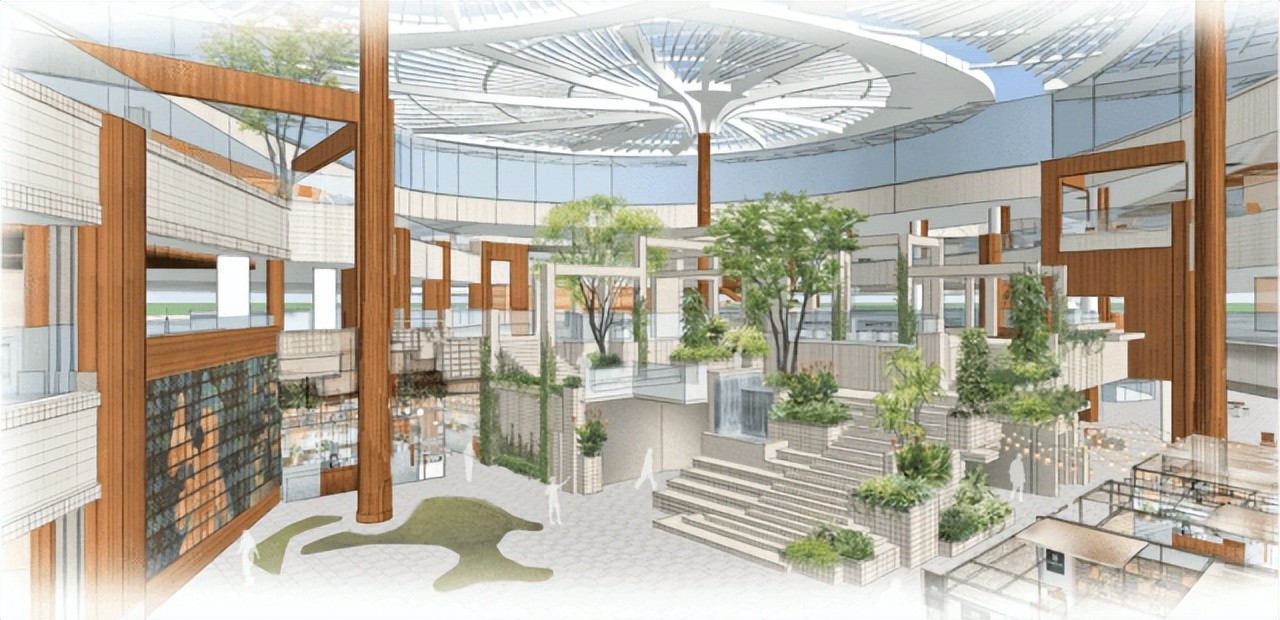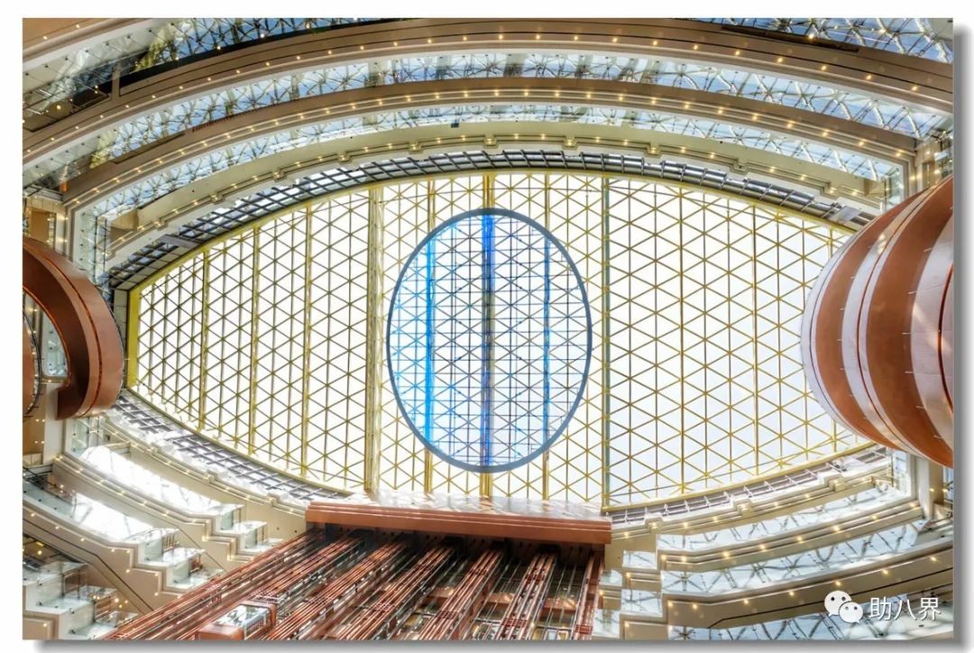 其采光天幕穹顶和顶部三层挑高的超级中庭空间,是最大亮点。