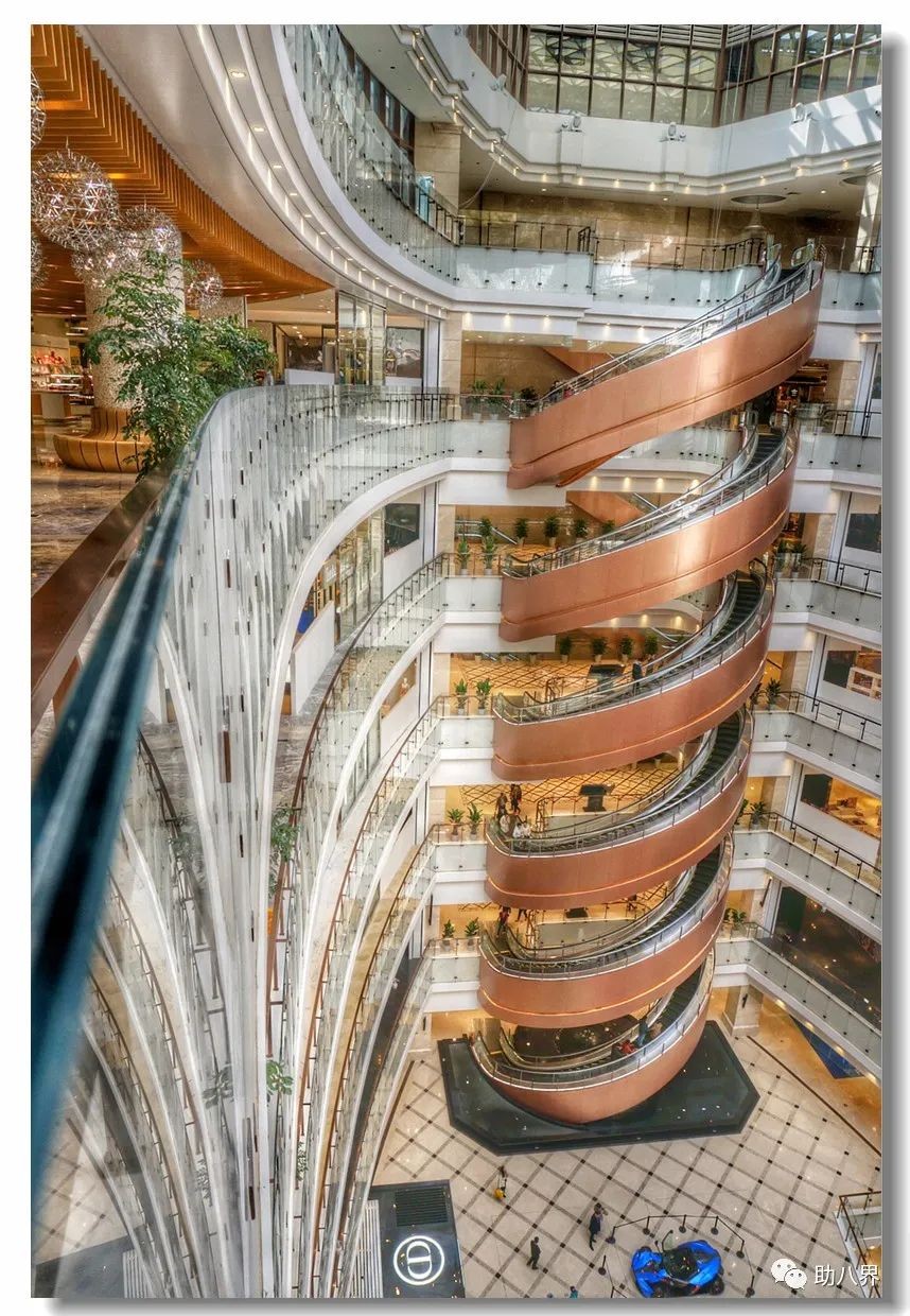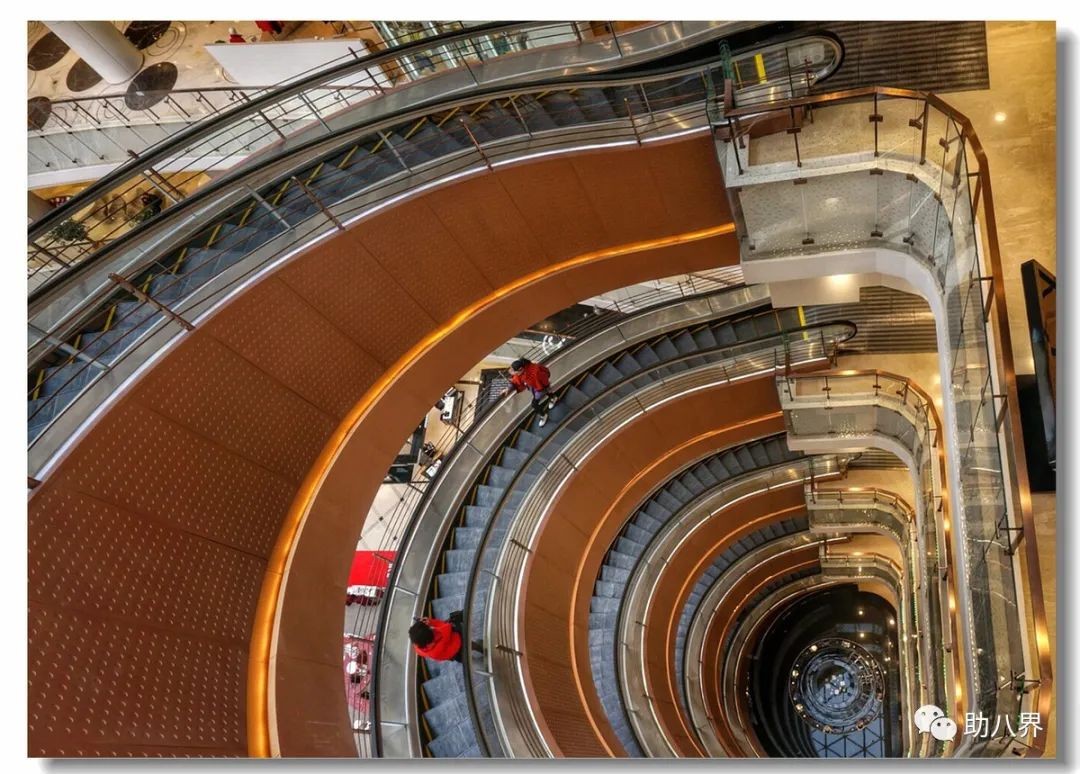 从1楼开始,站在以海螺造型的螺旋自动扶梯上就能到达6楼。
