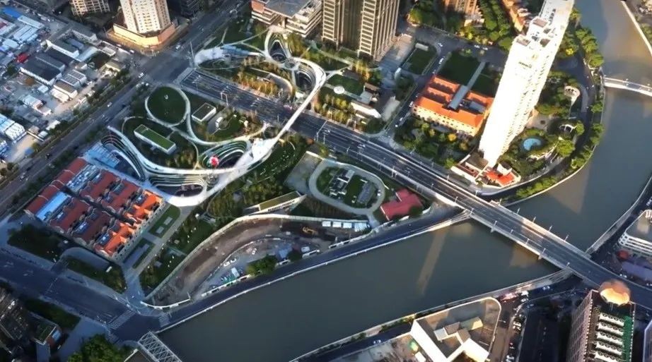 在建筑设计上,撷取了「江南水乡」的元素,整体呈现出统一、连贯的有机形态,有着动感飘逸和丰富层叠的视觉观感。