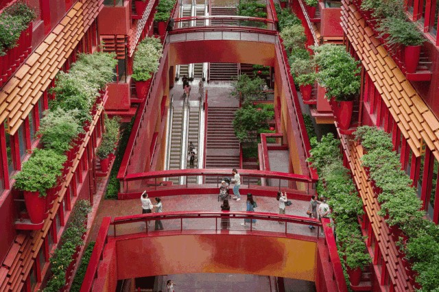这个「丹霞红商业建筑」,如今已成为魔都核心区时尚打卡新地标。