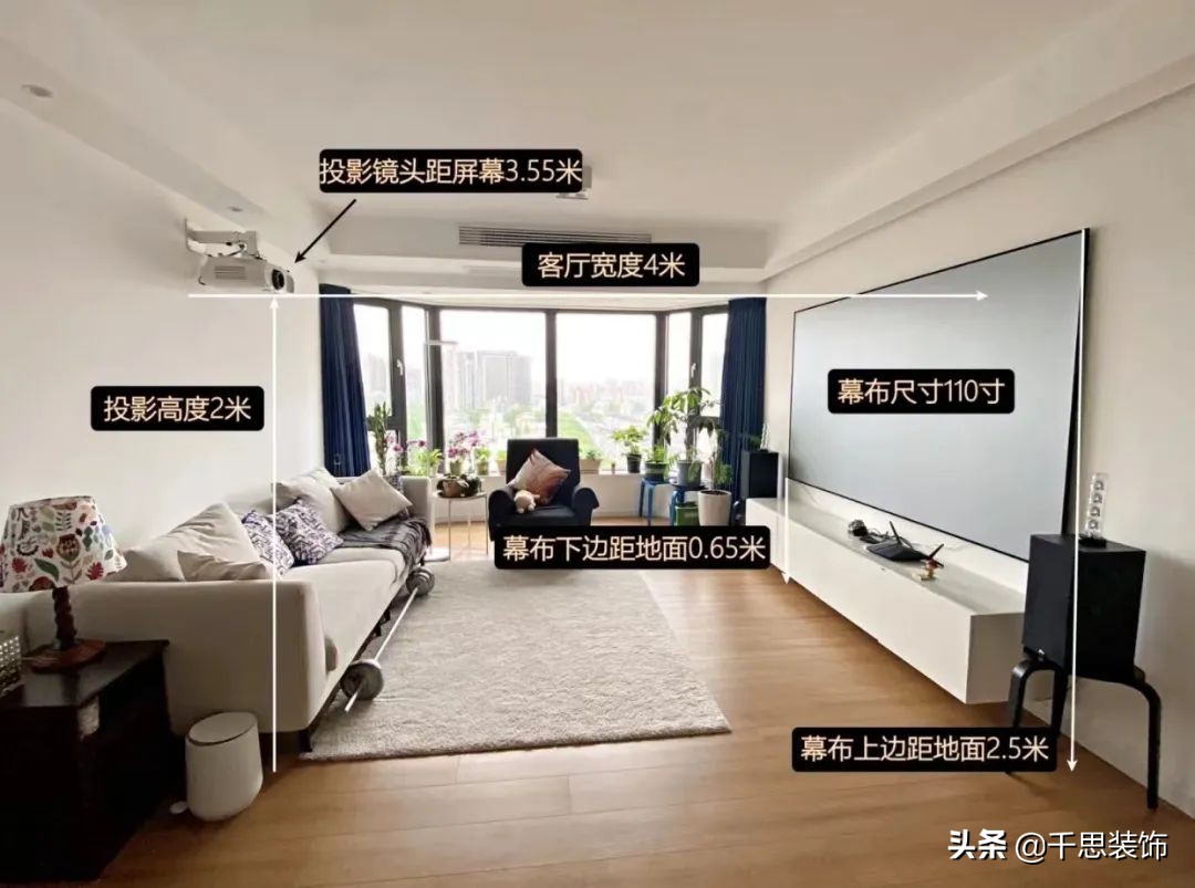 因此当我们确定了幕布的尺寸之后,就可以算出最佳观影距离是多少,并以此确定幕布和沙发的位置等等。