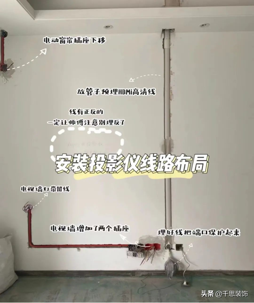 如果是毛坯房,且在装修初期就计划好了要装投影仪,那么就可以选择走暗线——即提前规划好投影仪线路,
