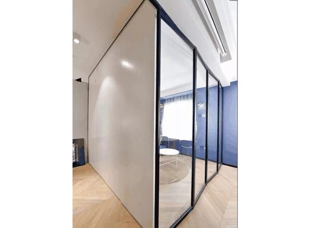 藏在柜子里和侧边墙面的折叠门,也可以让客厅变成一个独立的空间,这样既可以保证光线的流通,又能避免一些油烟问题。