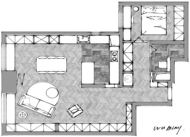 一套建筑面积75平米的现代简约风小户型公寓,屋主只做了一个卧室,把客厅、餐厅和厨房打通,让整个家看起来更加明亮宽敞