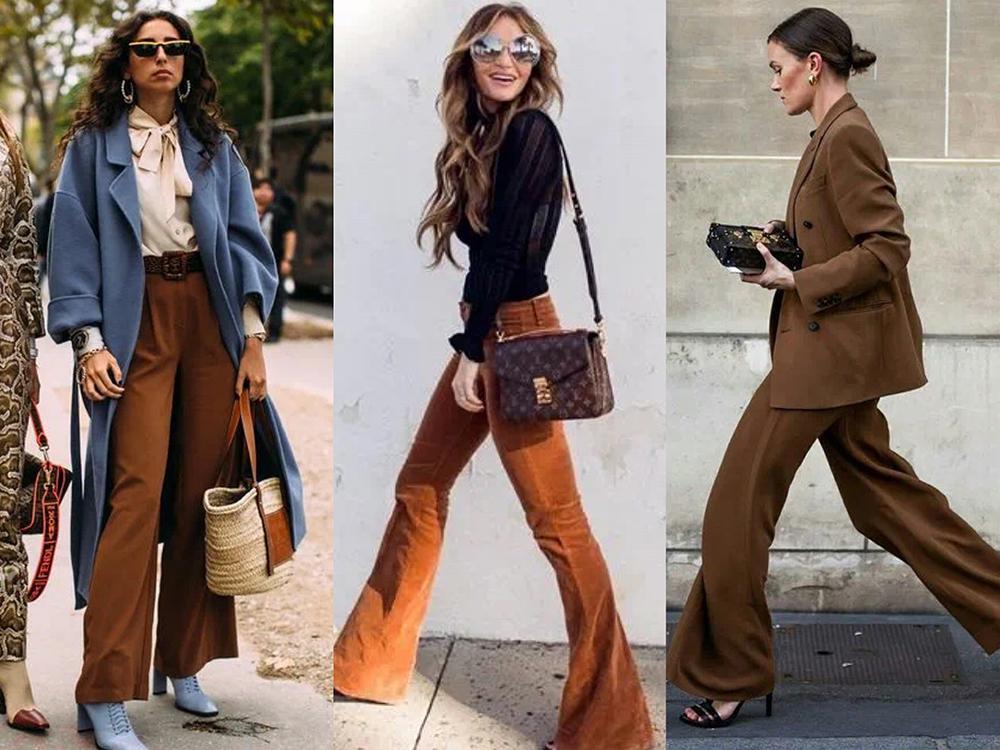 另外,这个琥珀色系视觉感很复古,我们可以利用复古面料来深化这种复古气息,比如选择灯芯绒或者丝绒材质的琥珀色系裤装,颜色和面料的融合,恰到好处,还能提升高级质感。