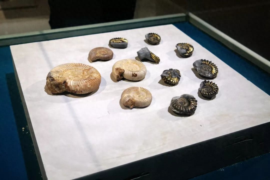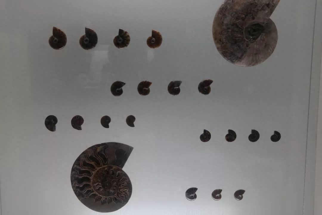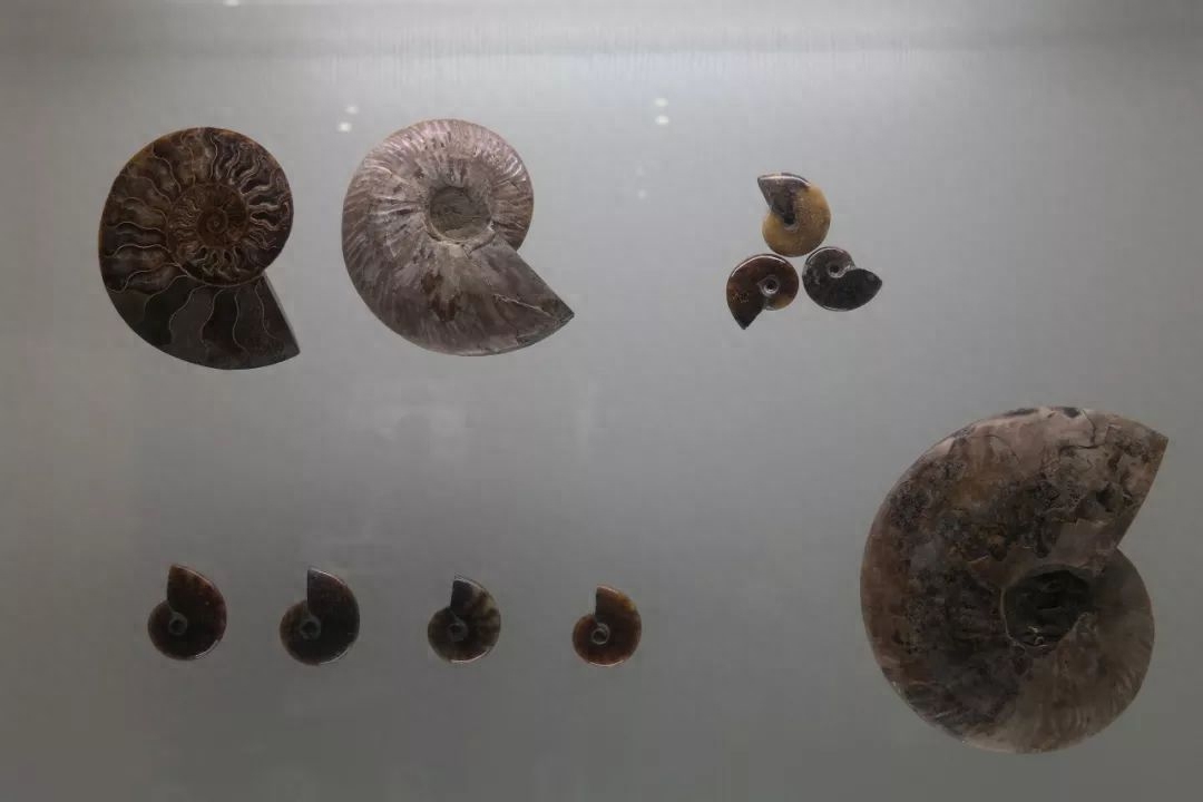 大小各异的鹦鹉螺化石: