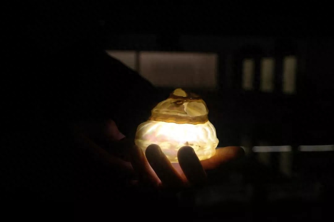 除了做装饰,贝壳还有很多其他用途。比如夜光贝,在黑暗中放进一个光源,贝壳把光线聚拢成柔和的颜色再散发出来,非常浪漫。