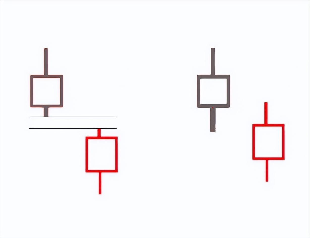 假阳线通常是出现在下跌途中,股价较前一日大幅低开,最后收出一根阳线,但留下了跳空缺口,即当天最高价要低于前一日K线实体的最低点(如上图1左边所示)。这种信号表现更强烈。