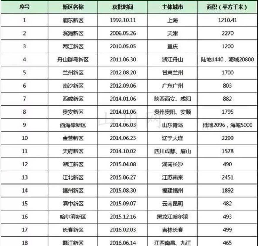 各个国家级新区面积: