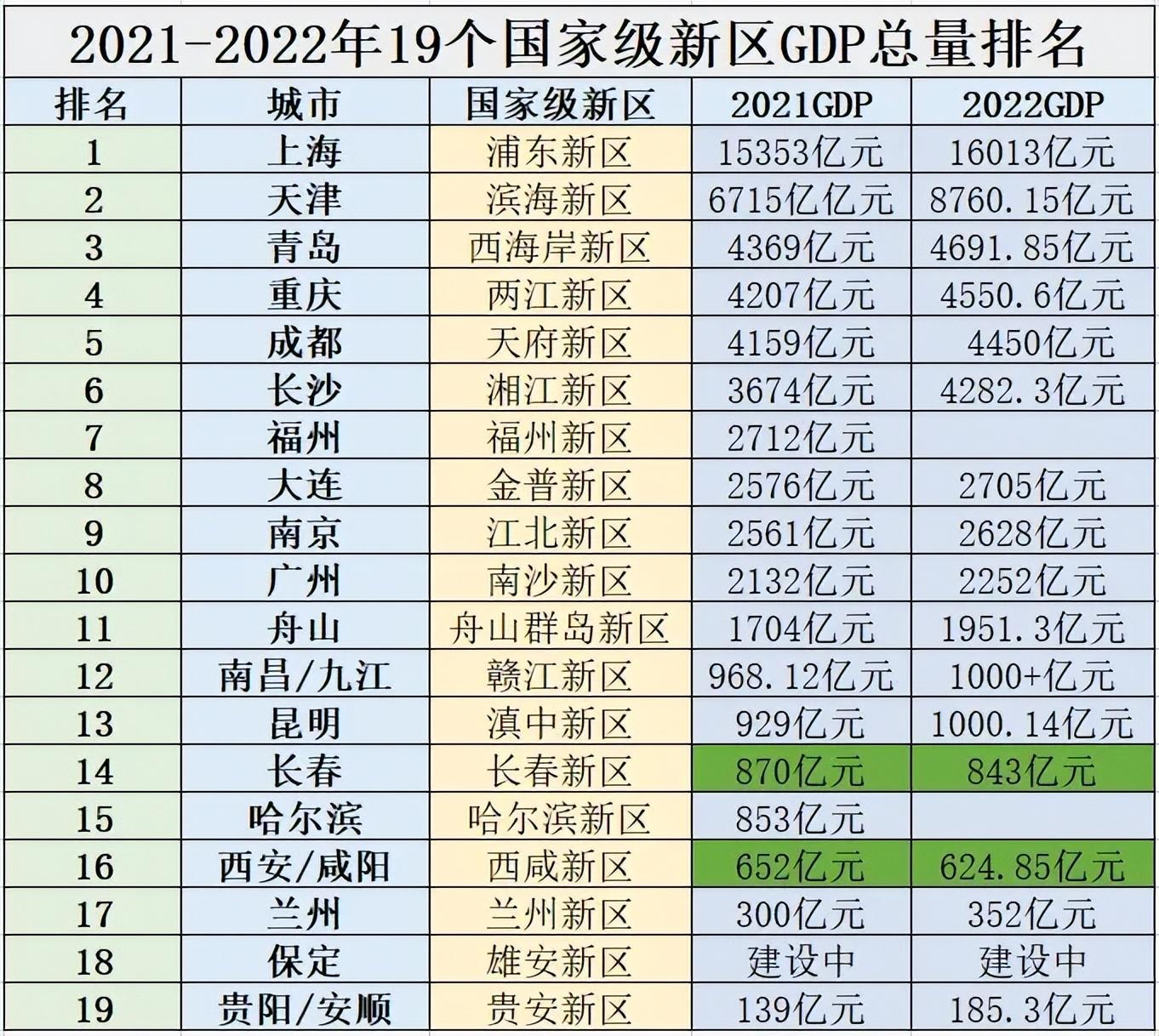 以上海浦东新区、天津滨海新区、青岛西海岸新区为代表的部分国家级新区位列我国城区经济的第一梯队。两江新区和天府新区作为西南地区甚至西部地区的龙头新区。