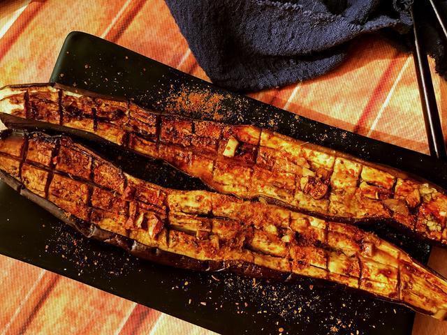茄子最好采用蓝紫色的长茄子,这类茄子最合适烤。