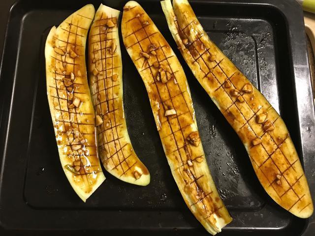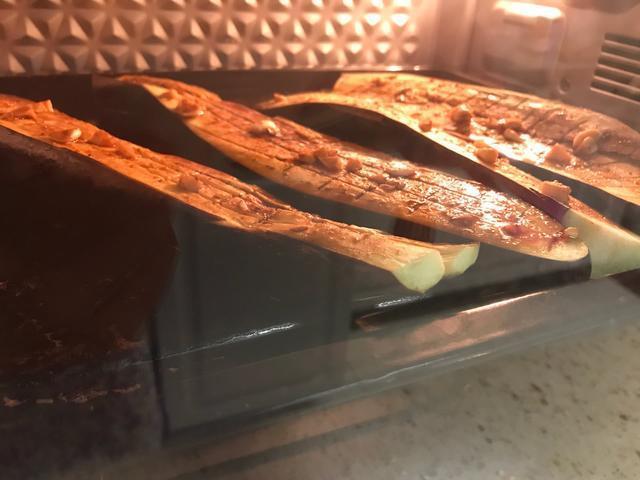 3、假如心急得话可以在做饭的过程中将茄子蒸半生熟,随后再抹调味品用烤箱烤10分鐘就可以了。
