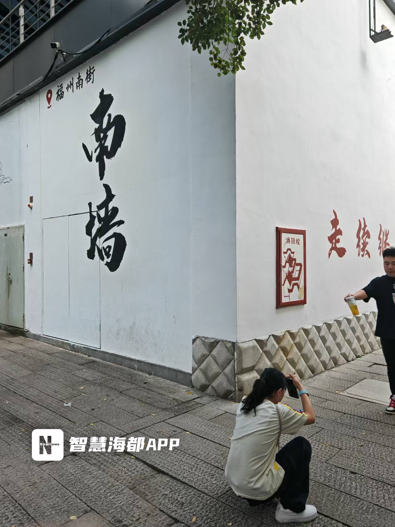 “南墙”在福州市东百中心A馆的叠水广场附近,白底黑字的“南墙”二字以其独特的设计风格吸引市民、游客到此打卡。