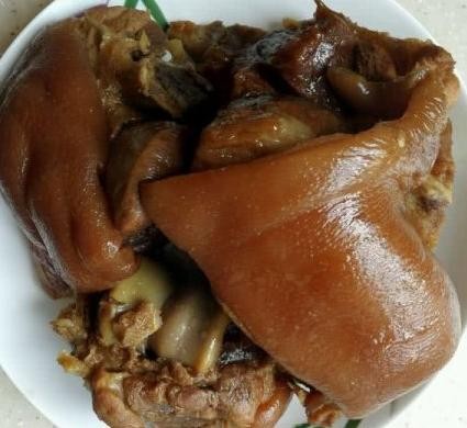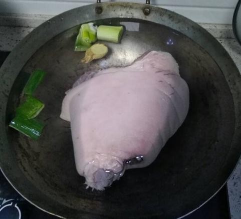 【主要食材】:1个猪肘子(一般后蹄肘子要大个,在家做有一个足以。)