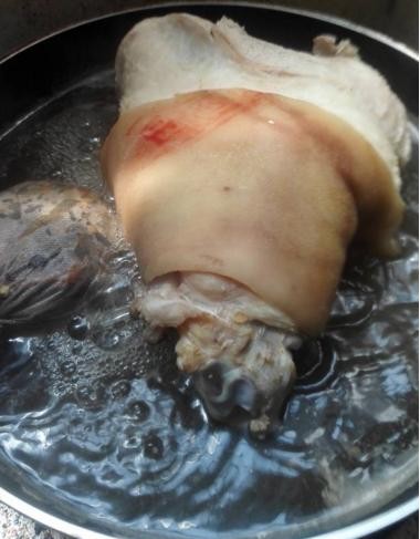 疑惑一:为什么猪肘子上面的猪毛要用火烧?还要把肘子皮也一起烧呢?