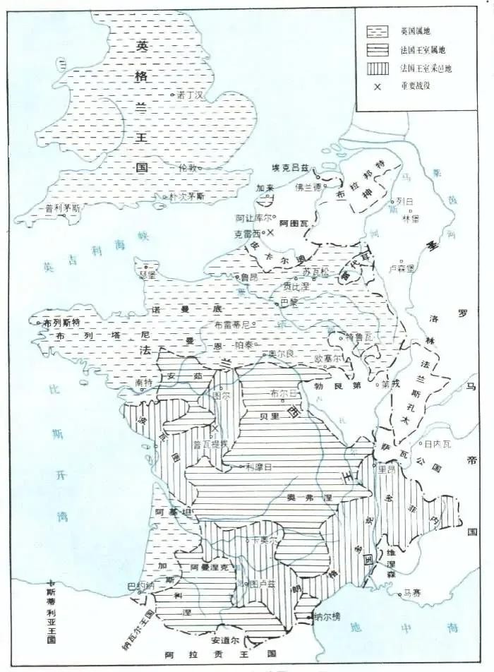 《大宪章》第一次把“王权关在笼子里”,把王权限制在了法律之下,确立了私有财产和人身自由不可被随意侵犯的原则,这使得大量的底层法国人渴望加入英国。同时,在12世纪中,英格兰金雀花王朝由于其发家于法国西北部的诺曼底,其祖上是日耳曼另一支的维京后裔,因此数百年的经营,其在法兰西占有广阔领地。这导致法王很难进行中央集权与对外扩张,而彼时法兰西国王腓力四世去世,紧接着法王的四个儿子也都去世,造成了法王的继承者变成了腓力的长外孙-英王爱德华三世,然而倔强的法国人不愿意英王入主法国,于是他们推举了腓力的侄子、瓦卢瓦王朝领袖为腓力六世。这无疑触怒了英王,更重要的是,法国一直在为苏格兰提供援助,这为志在统一不列颠岛的英王所不能忍,英格兰的经济命脉和皇家国库的正常运转在很大程度上依赖羊毛贸易。中世纪后期,弗兰德斯是羊毛贸易中心,但是弗兰德斯伯爵却是法兰西的贵族,至此双方的矛盾一触即发。