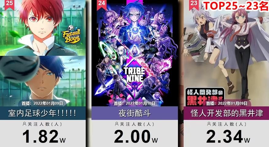 一月新番人气排名前25的作品,其中经典IP依旧拥有强大的关注度