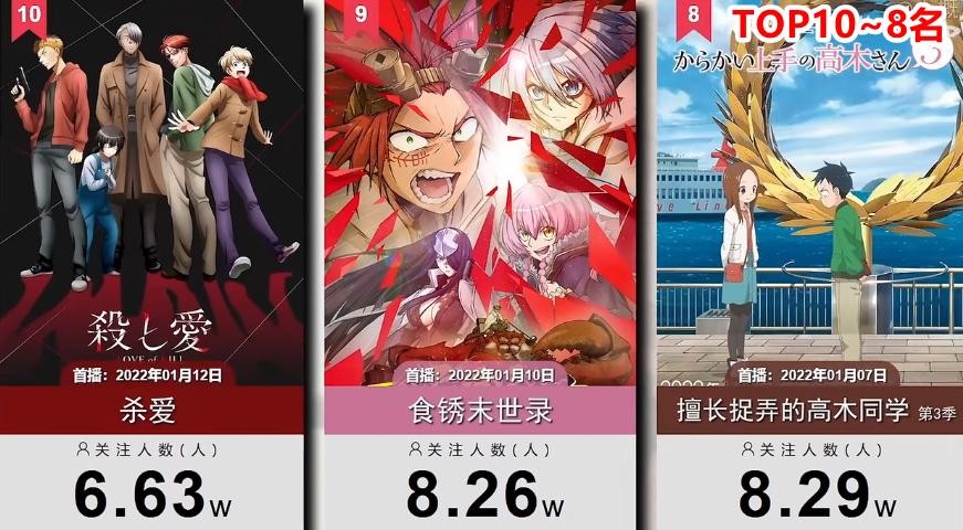 所以请某些小伙伴不要再拿着哪一部经典日漫出来,然后信誓旦旦地问为什么不在榜单里,要先看一下是不是在一月开播的。