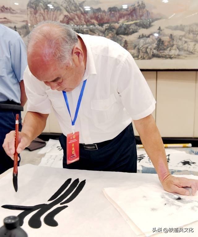 他说,怎样才能更好地传承铁道兵文化,弘扬铁道兵精神,书画艺术就是一个很好的平台和载体,就是要用我们的书画艺术充分展示铁道兵当年逢山凿路,遇水架桥的英雄壮举,特别是要再现铁道兵在解放战争和抗美援朝的战场上创造的那种打不烂,炸不断的钢铁运输线的恢宏场景,让全国人民始终铭记铁道兵当年风雷激湯的岁月,更加了解铁道兵脱下军装后一脉相传的中国铁建创造的高铁时代。