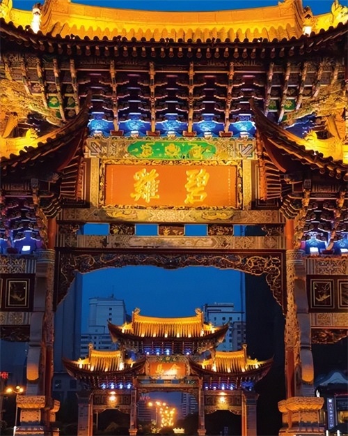 从此,“金碧交辉”成为“昆明八景”之一载入史册。"金马碧鸡坊"的设计也成了古代云南人对数学、天文学和建筑学方面超高造诣的体现。