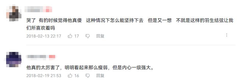 病痛面前,羽生结弦丝毫没有畏惧。他跳跃、旋转,给全世界的观众带来惊喜和惊艳。“容颜如玉,身姿如松,翩若惊鸿,婉若游龙。”