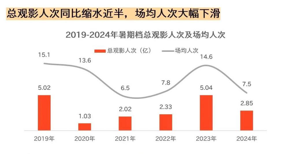 但是成本控制也很有可能赶不上营收降低的速度。从各个公司的财报显示,放映板块的成本下降的幅度均略大于营收缩减的程度。刚结束的暑期档也释放出对于院线公司而言较为悲观的信号:观影总人次的大幅下降,从去年的 5.05 亿降至今年 2.85 亿,观众的持续流失已不可避免。