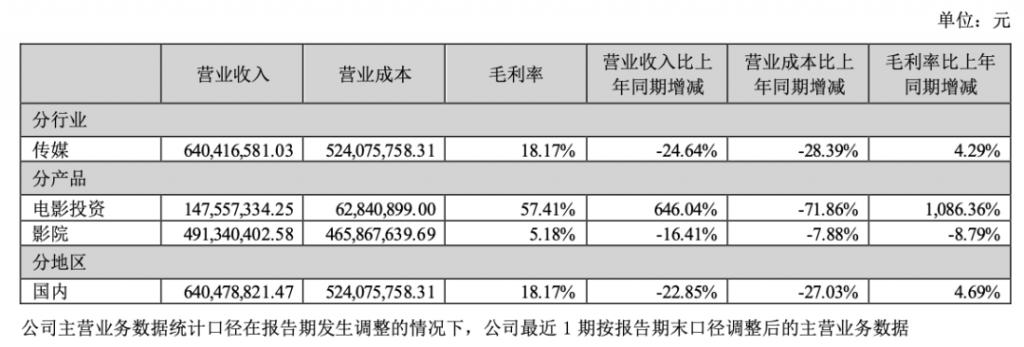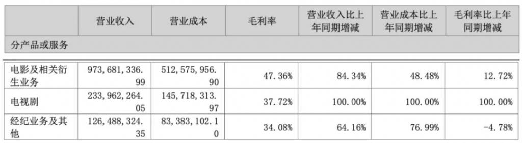 上半年票房前五的影片,均有中影参投出品的身影。而根据中影半年报显示,其主营的五个业务板块中,创作业务板块,即项目开发生产方面的营收缩减幅度最大,为 2.79 亿元,同期下降 57.64%,毛利率也较去年减少 9.02%。