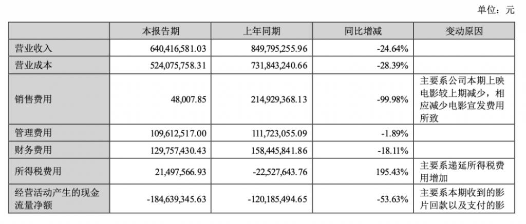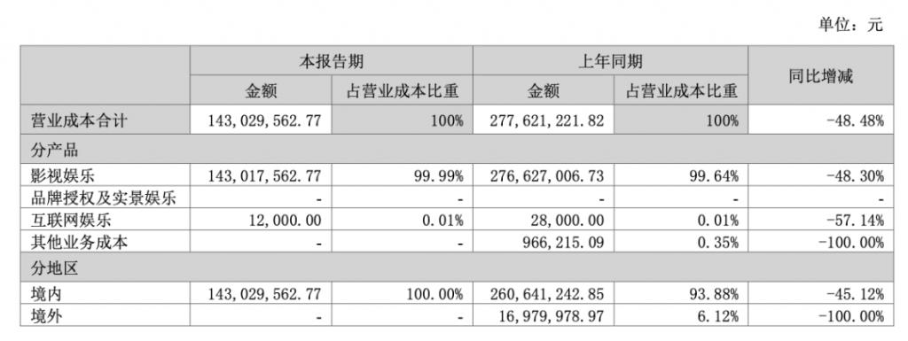 比如博纳,总体营业成本同比下降 28.39%;其中宣发环节的销售费用缩减最多,下降了 99.98%。在上半年度,博纳除了参投了一部《飞驰人生 2》以外,总体而言表现平平。其余参投的项目,如《狗阵》,以及暑期档的《传说》和《红楼梦之金玉良缘》,在票房上均面临不同程度的失利。