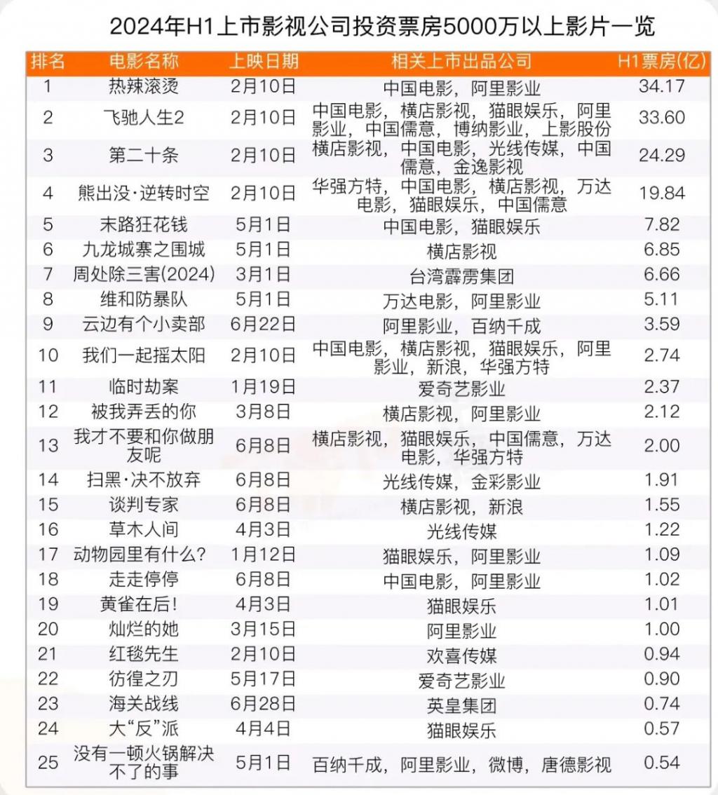 毒眸整理了 13 家电影行业上市公司的财报数据,以一窥上半年整个市场的实际效益。