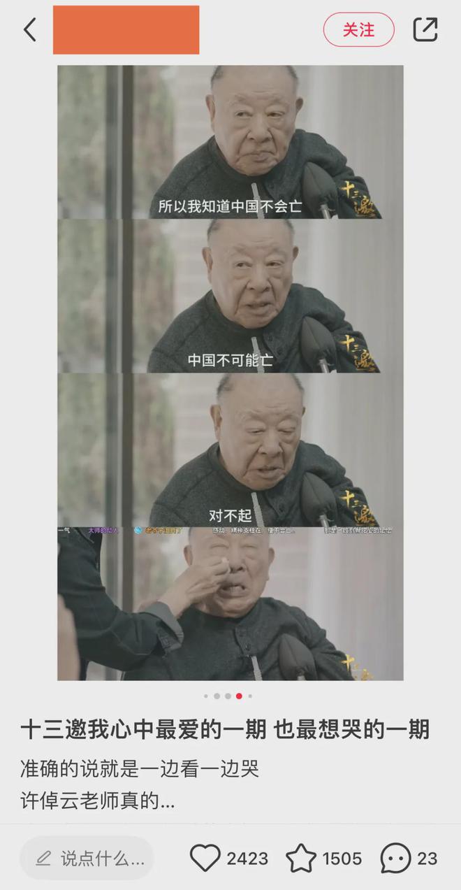 节目最后,许倬云评价许知远为 " 穿针引线之人 ",将有价值的思考陈述给大众听," 功德无量 "。