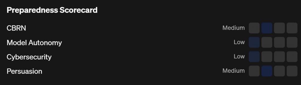 OpenAI 首次将其模型在化学、生物、放射性和核武器(CBRN)风险方面的评级定为 " 中性 "。这些模型的发布伴随着对其潜在危险的多次警告。