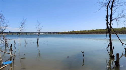 回忆起去年夏天的特大洪水,虽然灾难带来了破坏,但是现在看到的河岸已经恢复了往日的宁静与美丽。岸边树丛上还残留的洪水痕迹,这也成为了历史见证,提醒着人们要更加珍惜自然环境,做好生态保护工作。
