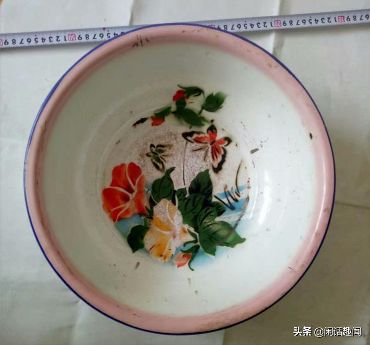 那个时候这种水盆特别受欢迎,在盆面有花有鱼的都很受欢迎,老式洗脸盆可谓风靡一时。