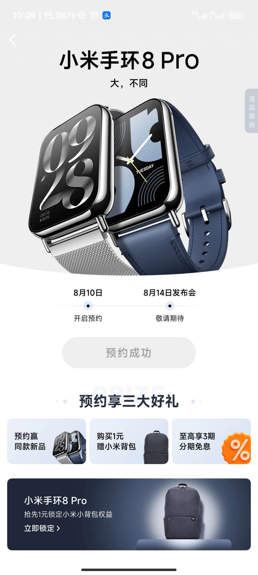 小米手环 8 Pro 现已上架并开启预约,8 月 14 日发布