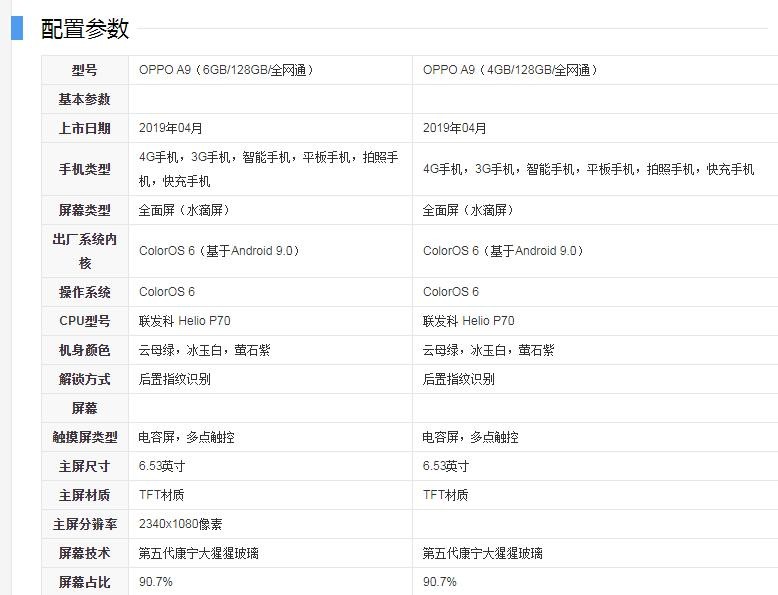 OPPO A9是OPPO公司旗下的一款手机,于2019年04月正式发布。买这个型号手机的用户已经用了快两年了啊。这款手机有两个型号大家对比一下。