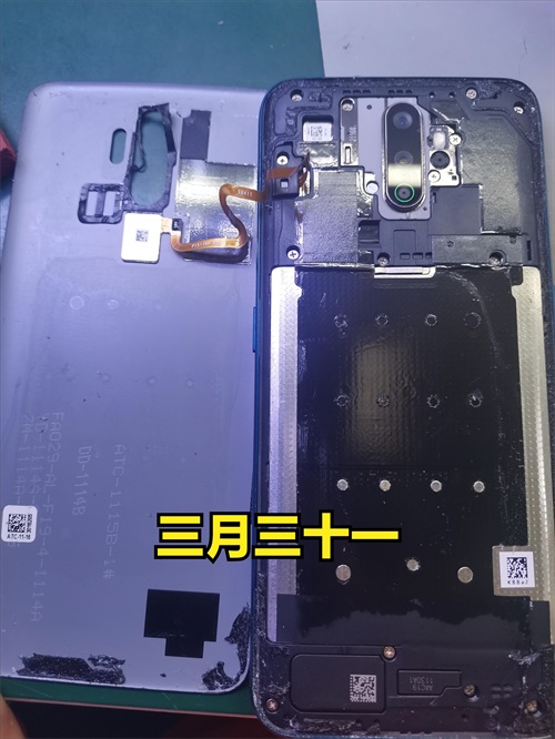 后盖拆开以后就是上图这样。一定要注意后盖连接着后置指纹排线,拆的时候小心不要把指纹排线拉断。动手能力强肯定没问题对不对。