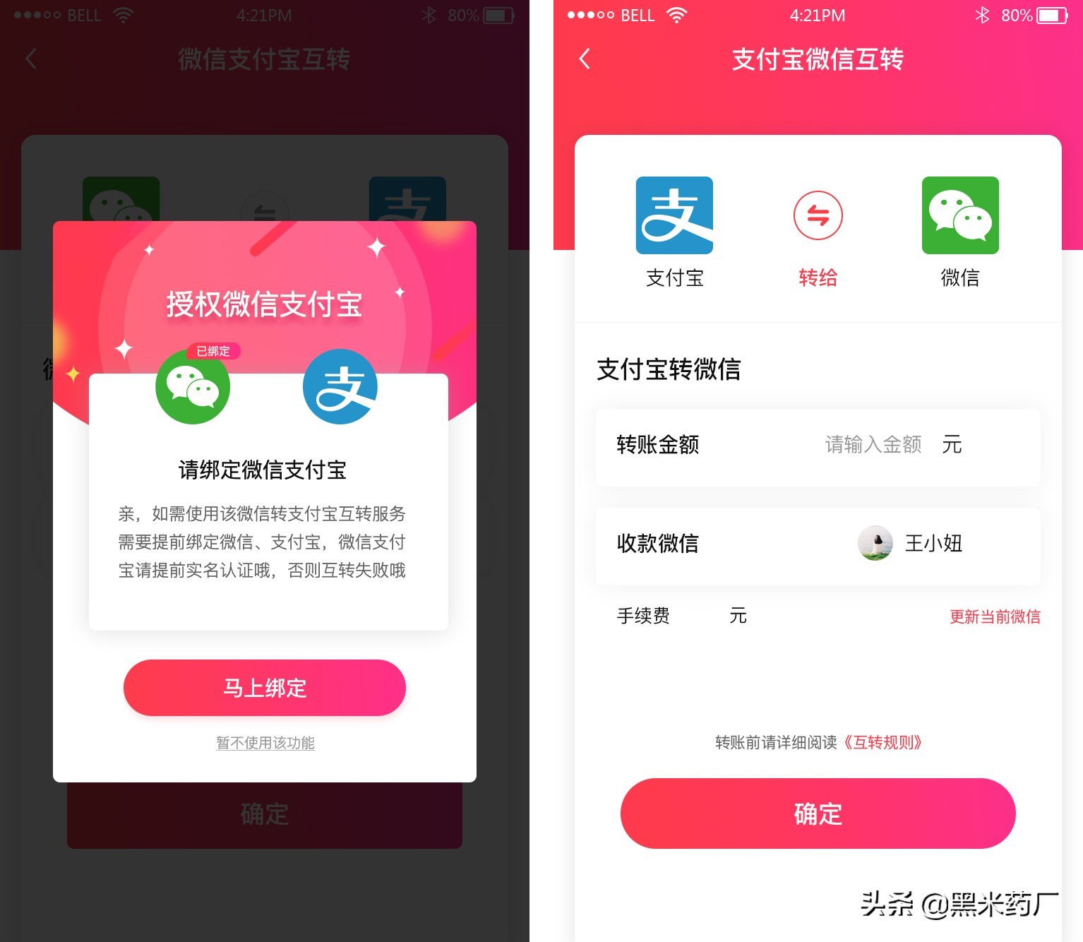 当前微信和支付宝已经逐渐渗透到我们日常经济活动的各个方面。但是微信和支付宝都是各自为政,自成体系,给广大用户带来不便。用户微信和支付宝的余额无法进行直接互转。