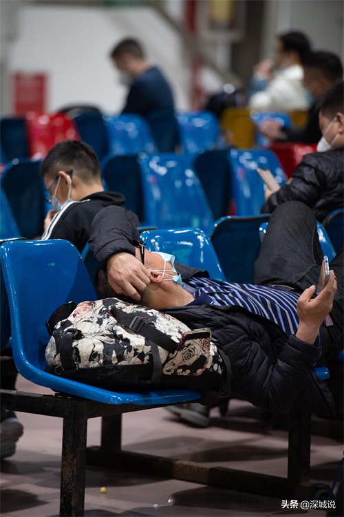 2022年春运,深圳西站,在候车室休息的旅客。