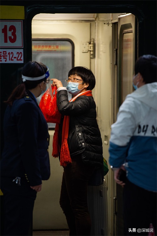 2022年春运,深圳西站,上车的旅客在与列车员交谈。