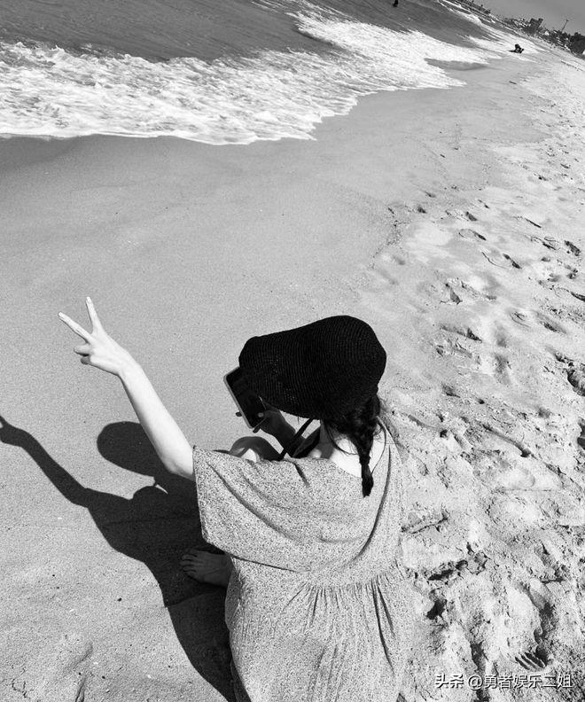 在第二张照片里,宋慧乔坐在海边沙滩上,一边拿起手机拍照,一边面对大海,背影里是一片壮观的海景。她穿着一件宽松的长裙,梳起一条简单的辫子,在深棕色的遮阳帽下,看起来更加俏皮。