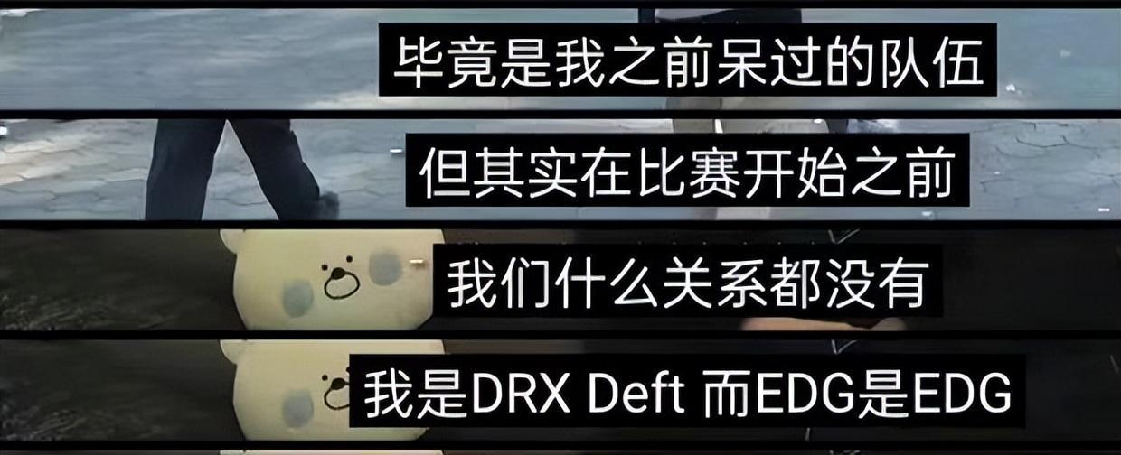 因为EDG是DRX淘汰的,而deft则表示;毕竟EDG是我曾经呆过的队伍,但是在比赛开始之前,我们没有任何关系,我是DRX战队的deft,而EDG是EDG,我希望大家关注DRX,而非EDG。这一番话听起来,是没有什么问题的,但是对于EDG粉丝来讲,却很不舒服。