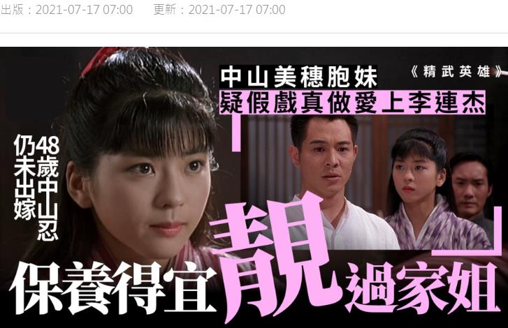7月17日,港媒曝光了中山忍的近况,已经48岁的她,仍未婚未育。